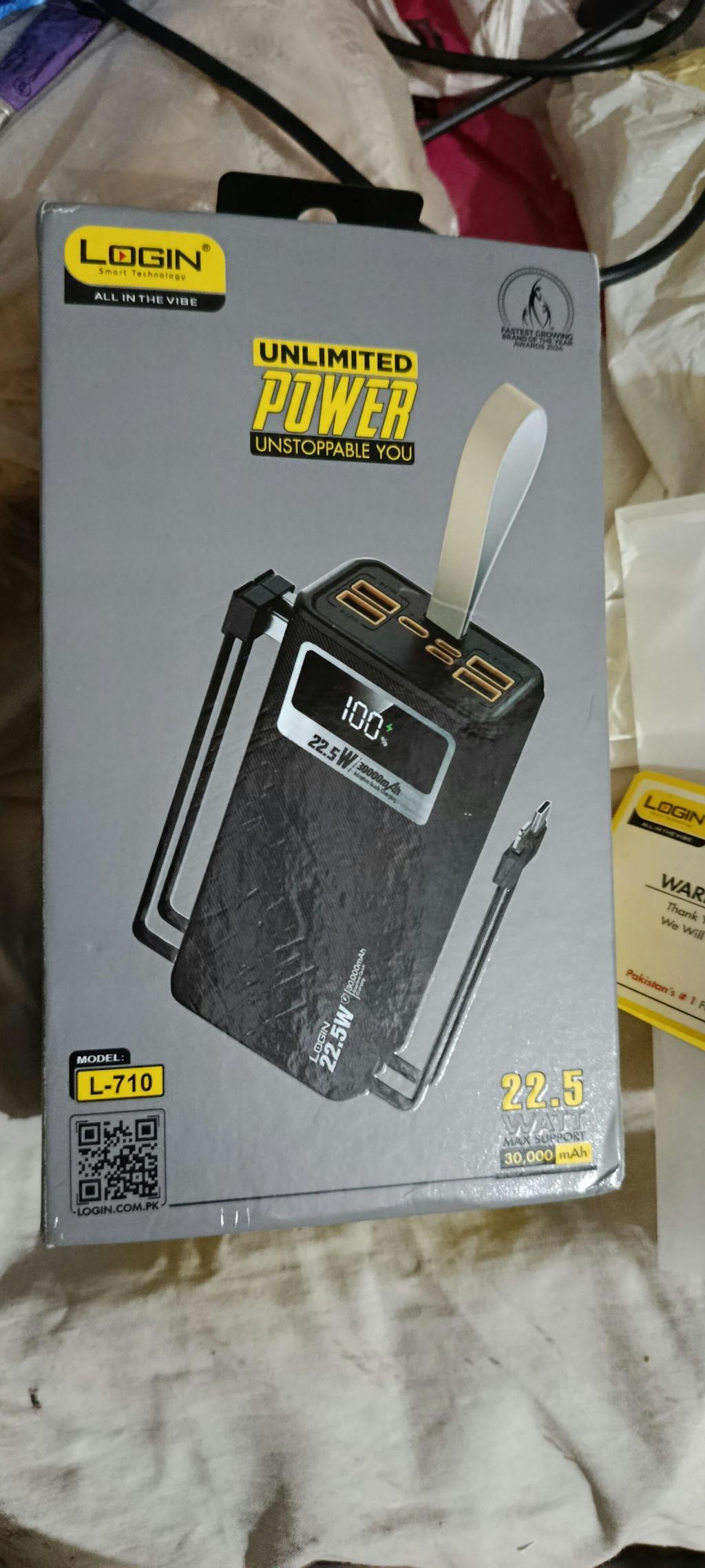 The Login’s 30,000mAh L-710 Power Bank is designed for users who need powerful performance with maximum connectivity. With 6 output ports, 2 built-in cables, and a convenient rope handle, it offers both capacity and convenience in a compact design. The digital display and LED light add smart functionality to this durable charging companion.